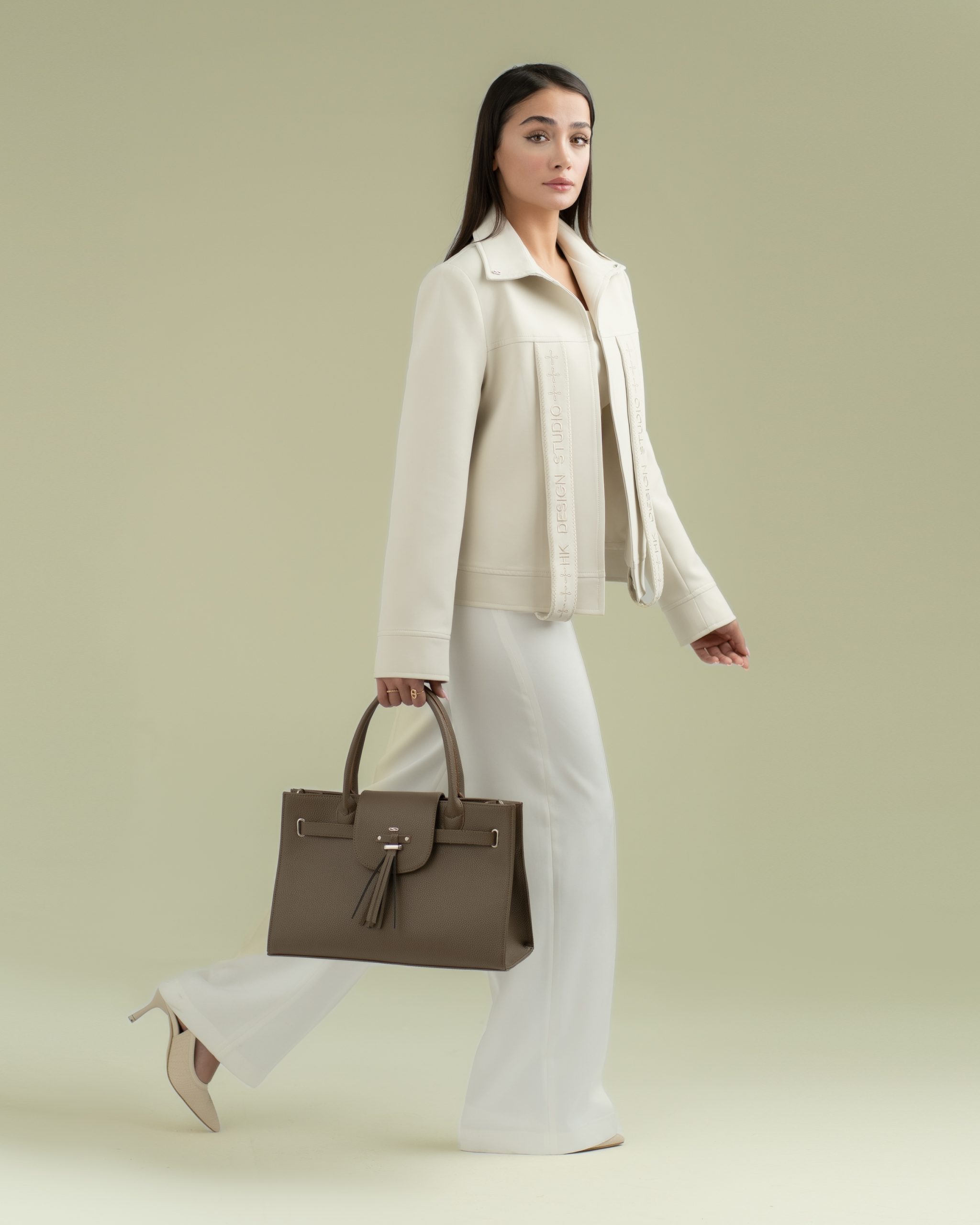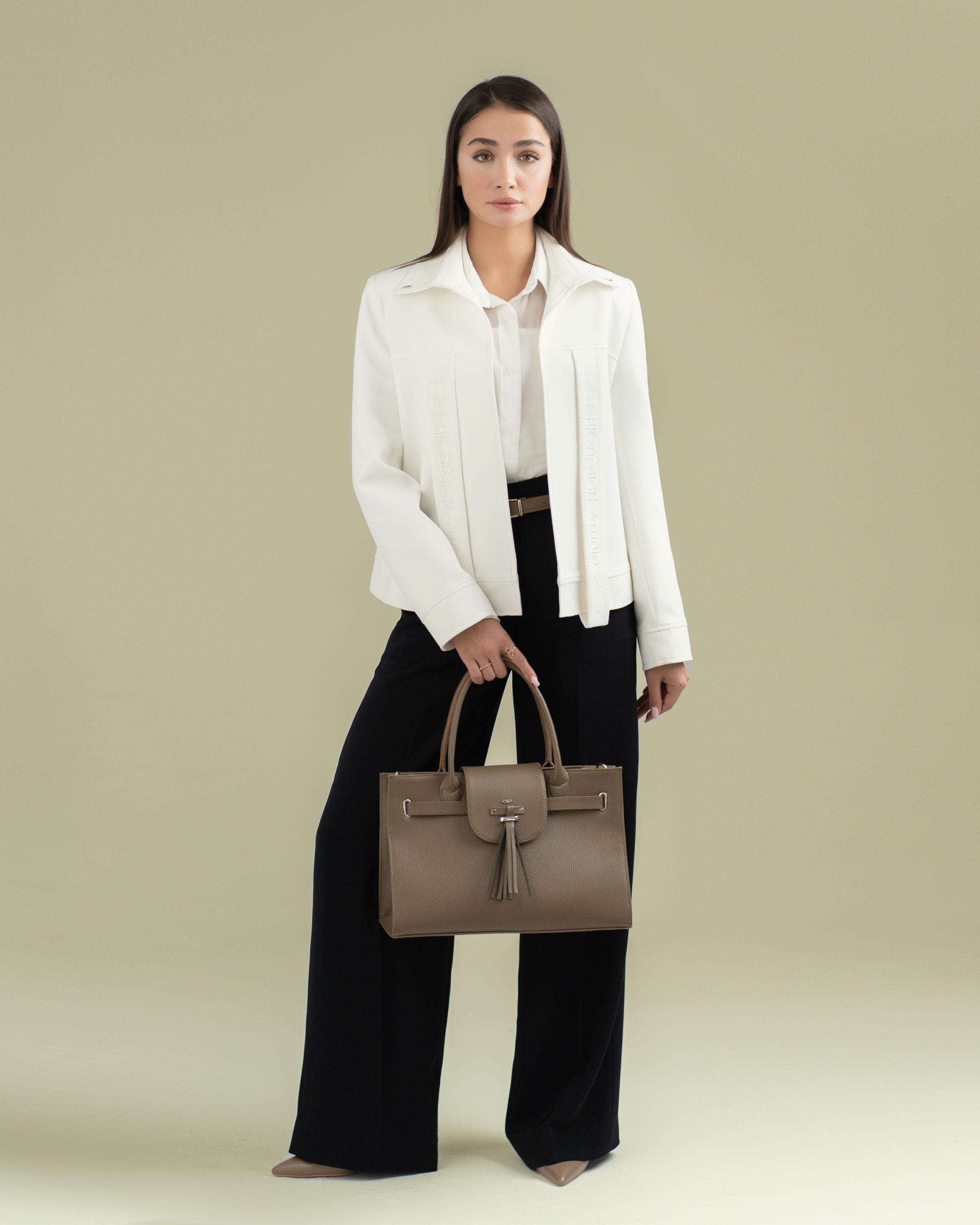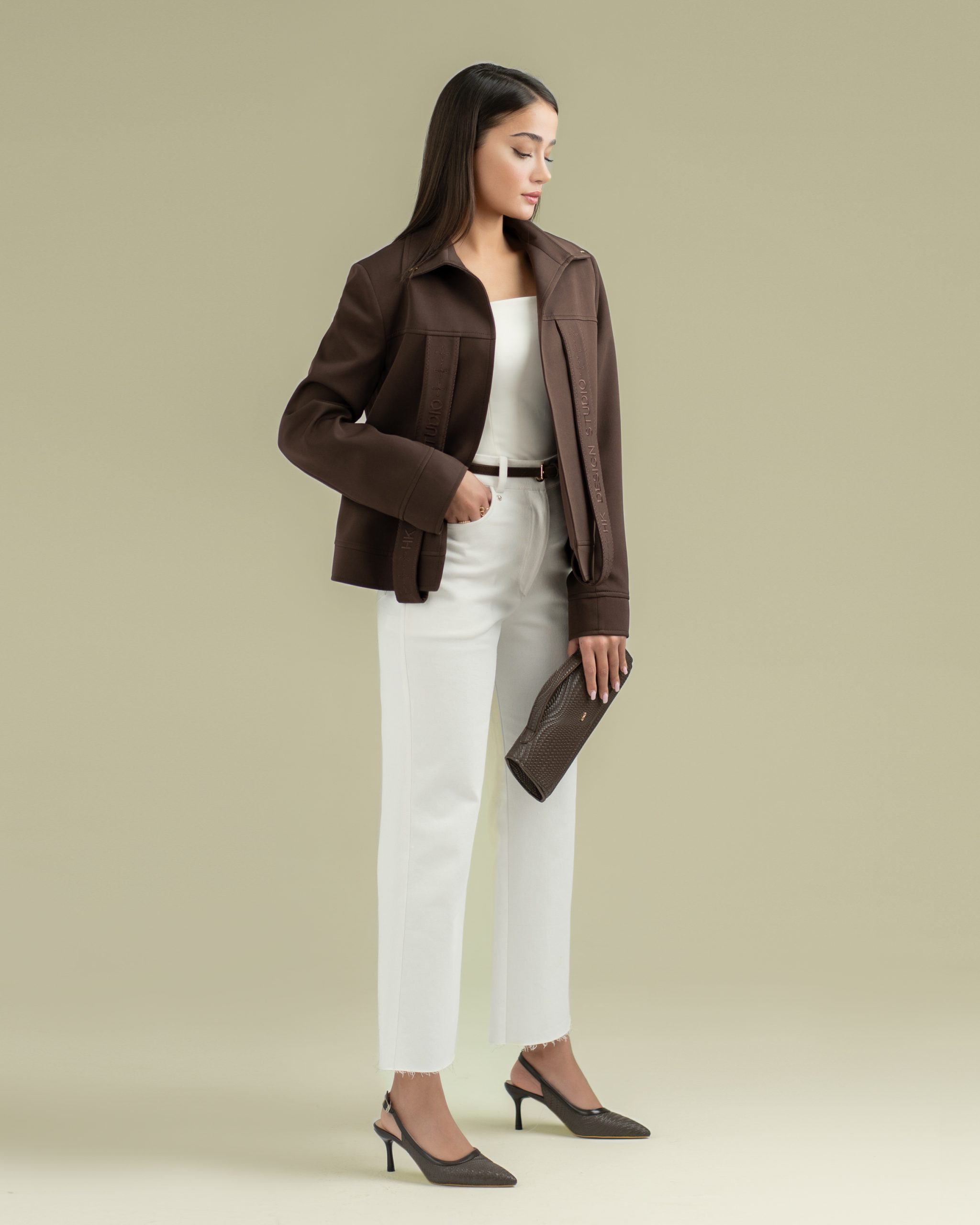یقه کلاسیک با آستین بلند، ترکیبی از ظرافت و سیلوئت کشیده برای زن امروز.