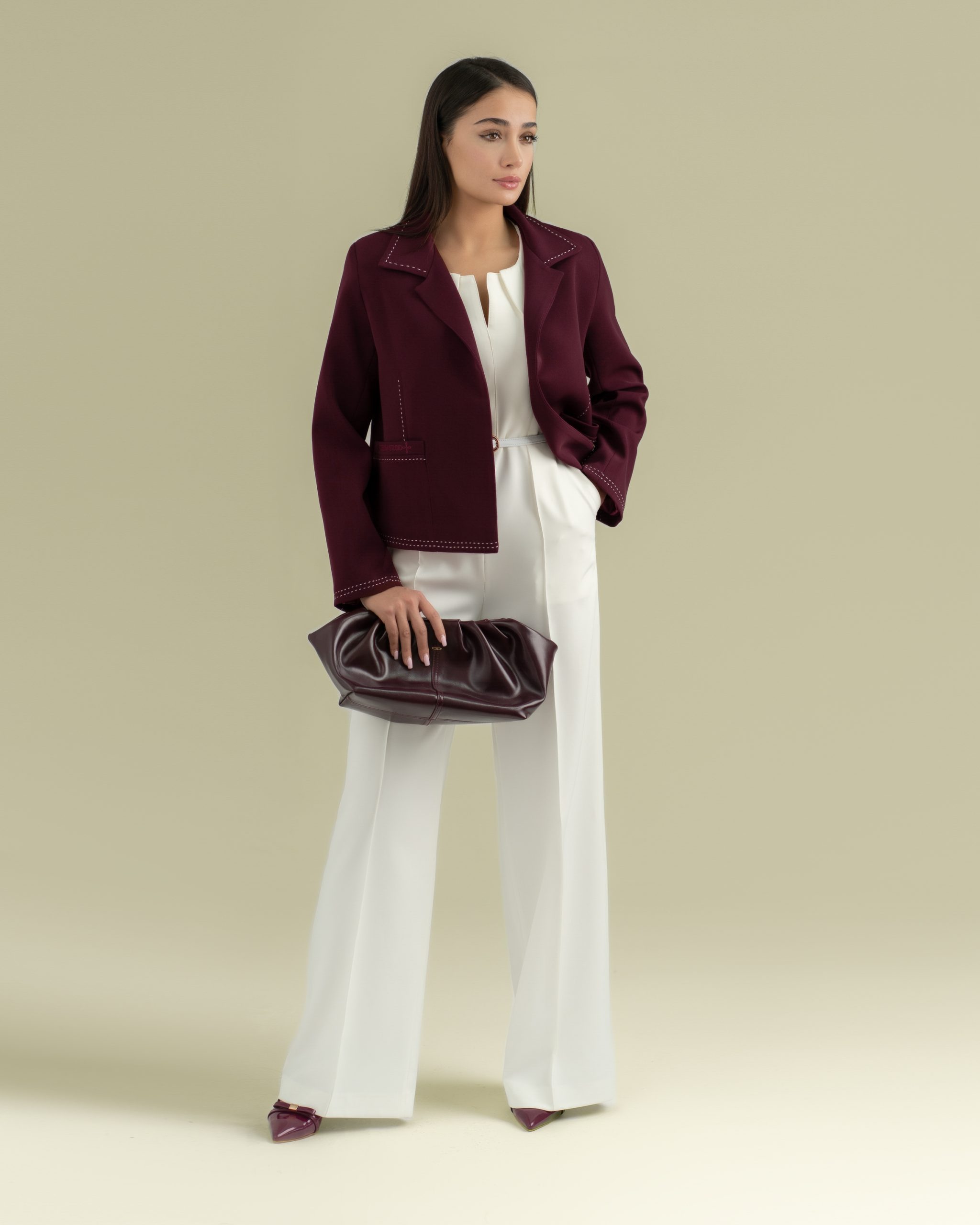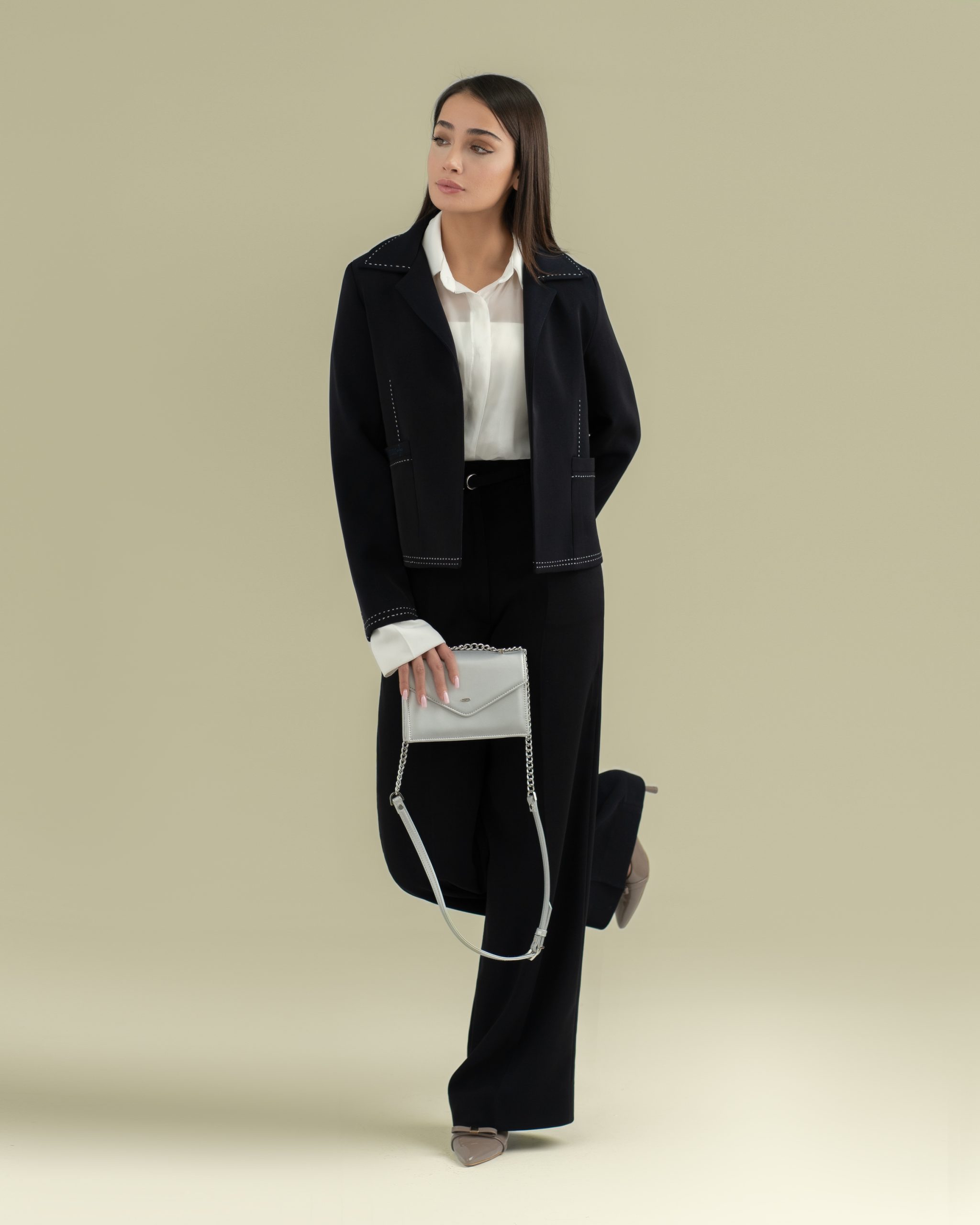 جزئیات زنانه و لوکس را کامل میکند وسیلوئت کوتاه و زنانه را برجسته میکند.
