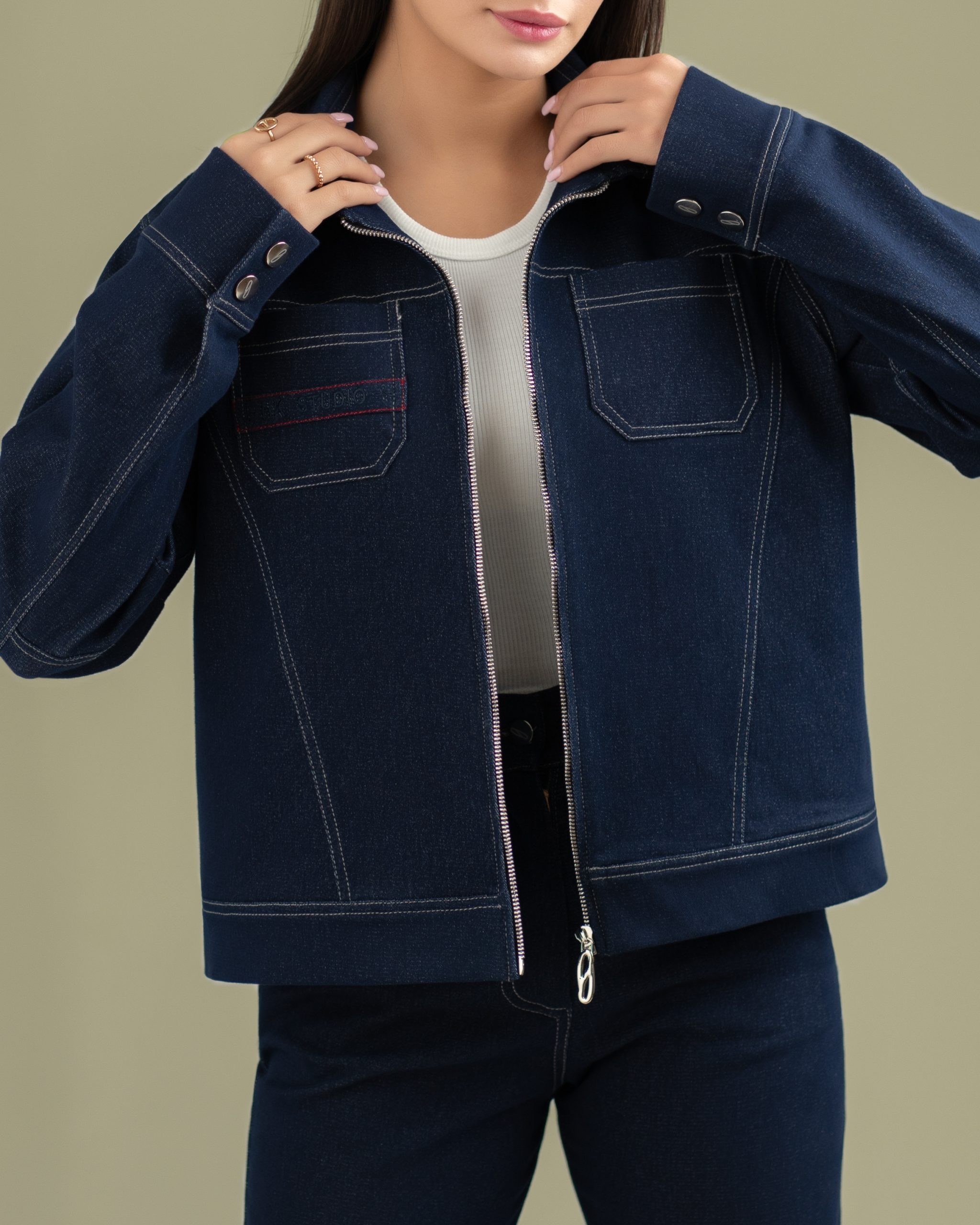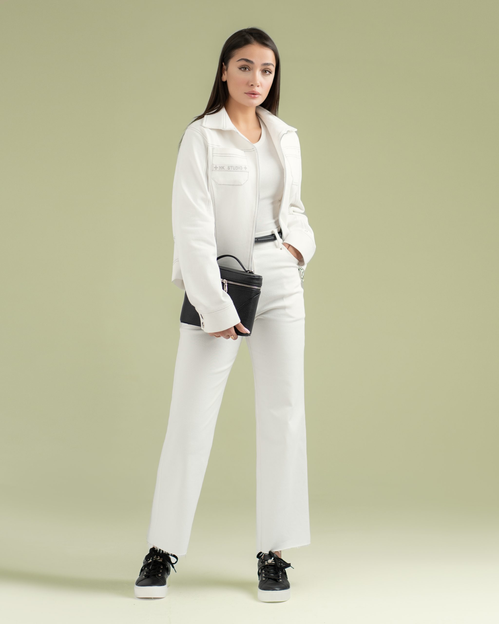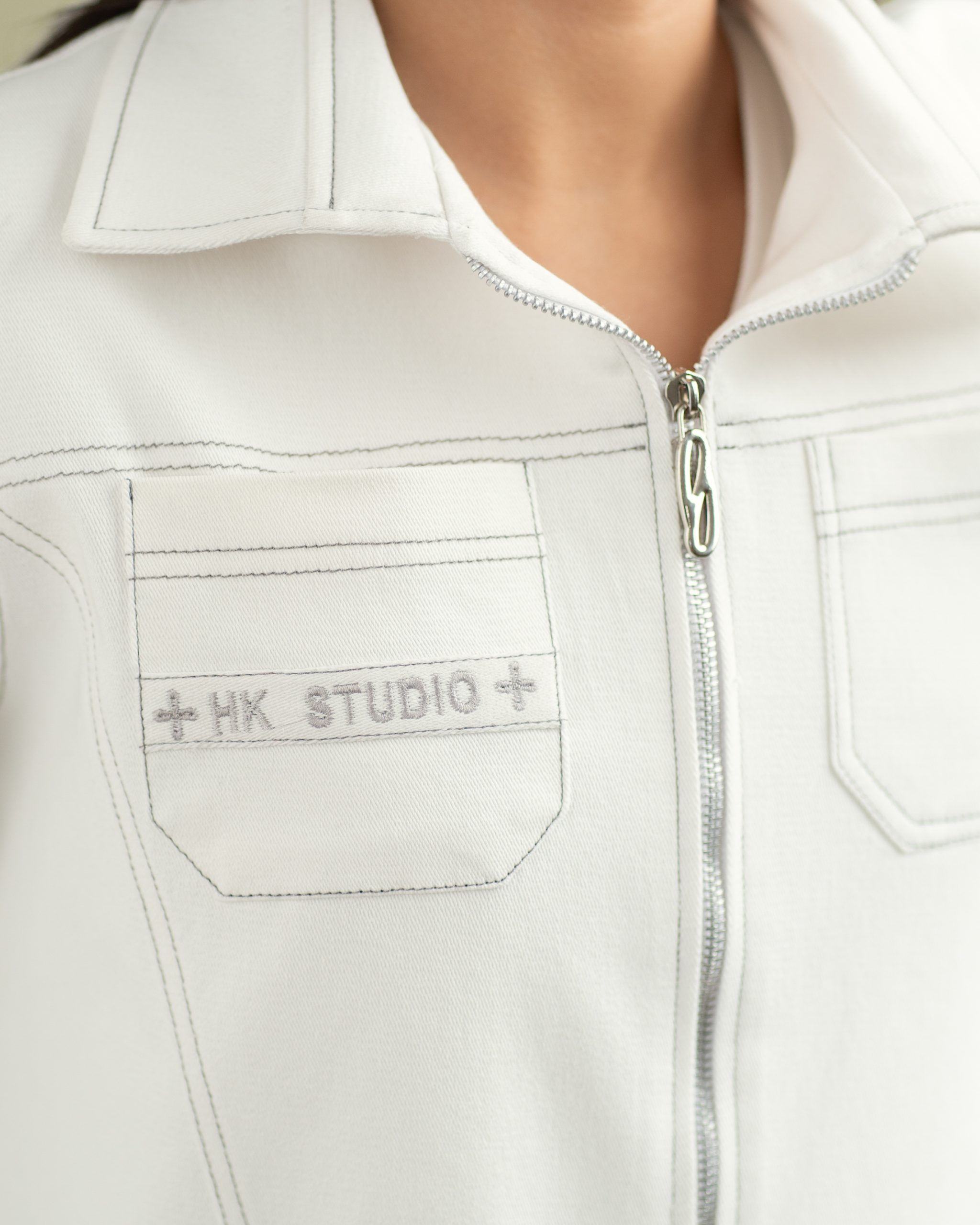 گلدوزی انحصاری HK در پشت و گلدوزی ظریف HK در سر جیب،به همراه زیپ جلو با لوگوی انحصاری